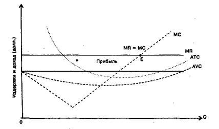 Из рисунка 2 видно, что если предельный доход (MR) постоянен, то точка Е — точка пересечения МК и МС, показывает, что объем производства, при котором Р (цена) равна МС, т. е. Р = МС, позволяет производителю максимизировать прибыли или минимизировать убытки. Мы видим, что Р > АТС. Это говорит о росте совокупности прибыли, обозначенной' белым прямоугольником. [6.c.264]