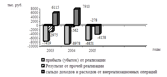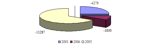 Из таблицы видно, что рентабельность производственной деятельности очень низкая, в 2006 г. снизилась до -33,21%. Это связано с ростом убытка.