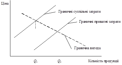 [34] Така ситуація можлива за будь-яких із перерахованих вище неспроможностей ринку (наприклад, зростання виробництва при одночасному збільшенні забруднення навколишнього середовища, збільшення споживання ресурсів суспільної власності тощо).