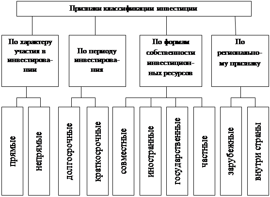 Рис. 2. Классификация инвестиций по отдельным признакам