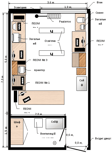 В четвертому розділі роботи „Охорона праці” проведений аналіз фактичного рівня умов забезпечення охорони праці в бухгалтерії підприємства та запропоновані заходи по забезпеченню нормативного рівня санітарно-кліматичних та протипожежних умов діяльності.