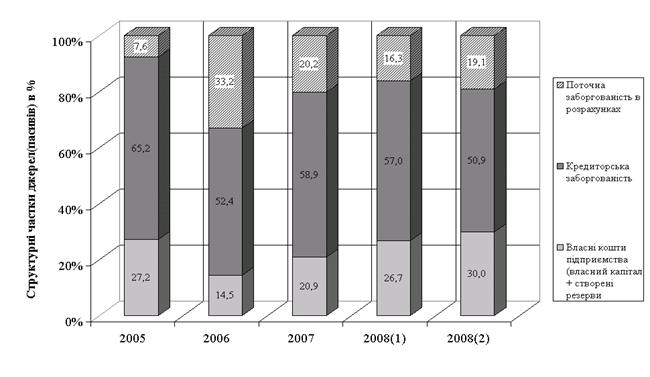 Рис.В.4. Динаміка структури характерних агрегатів пасивів балансу ТОВ „Металоіндустрія Плюс” у 2005 –2008 роках