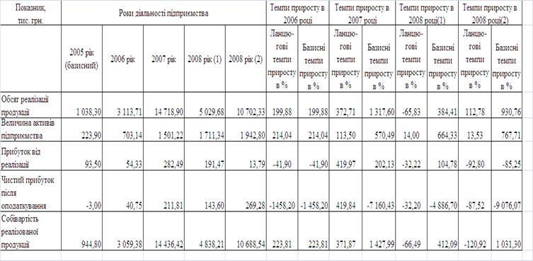 Аналіз динаміки активів і фінансових результатів підприємства ТОВ «Металоіндустрія Плюс» за 2005 2008 роки