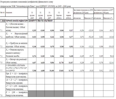 Динаміка стійкості ТОВ «Металоіндустрія Плюс» до банкрутства