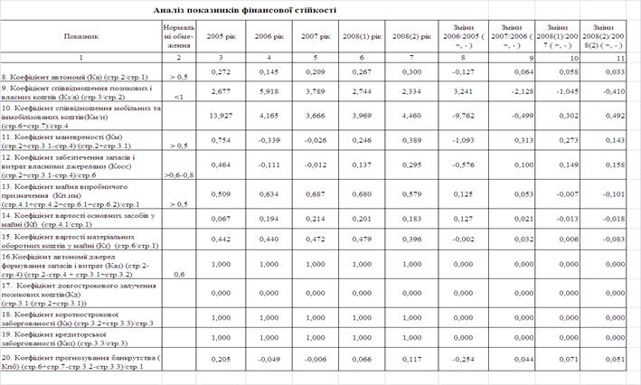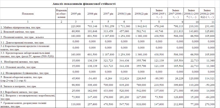 2.2.2 Аналіз фінансової стійкості та платоспроможності підприємства
