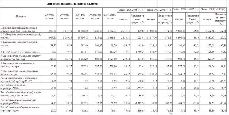 Аналіз динаміки показників рентабельності підприємства ТОВ «Металоіндустрія Плюс» за 2005 2008 роки