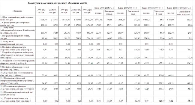 Аналіз динаміки оборотності оборотних коштів підприємства ТОВ «Металоіндустрія Плюс» за 2005 2008 роки
