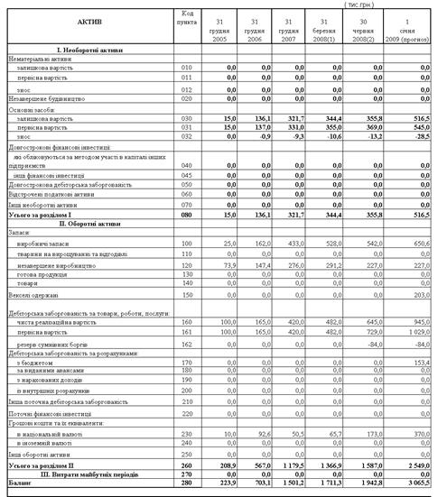 Результати прогнозування показників балансового звіту реорганізованого ВАТ „Металоіндустрія Плюс” у 2009 році