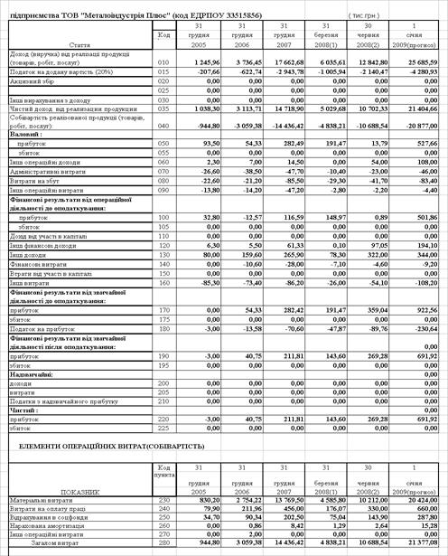 Звіти про фінансові результати ТОВ „Металоіндустрія Плюс” за 2005 2008 роки