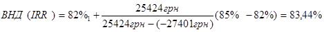 - Внутрішня норма прибутковості ВНД = 83,45 % ( що значно вище дивідендної норми дисконту = 23 % );