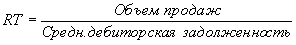 Коэффициент оборачиваемости дебиторской задолженности (Receivables Turnover, RT) - финансовый показатель, рассчитываемый как отношение оборота компании к среднегодовой величине дебиторской задолженности.