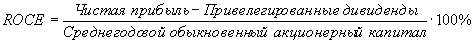 Кроме того, иногда вместо ROE используется показатель рентабельности обыкновенного акционерного капитала (Return On Common Equity, ROCE), в этом случае формула показателя выглядит следующим образом: