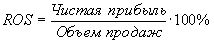 Коэффициент рентабельности продаж (Return On Sales, Net Profit Margin, ROS) - отношение чистой прибыли компании к ее обороту.
