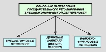 Основные направления, формы и методы государственного регулирования внешнеэкономической деятельности. Одной из важнейших тенденций в развитии мировых хозяйственных связей является диверсификация форм сотрудничества. К традиционным формам ВЭО обычно относят внешнюю торговлю и инвестиционное сотрудничество, связанное с перемещением финансовых потоков в виде экспорта и импорта капитала. Научно-техническое сотрудничество и промышленная кооперация выделяется либо в рамках последнего направления, либо как самостоятельные формы. Еще одной формой ВЭО, представляющий интерес с точки зрения государственного регулирования являются валютно-финансовые отношения. Таким образом, говоря о системе внешнеэкономических отношений в целом, можно выделить следующие основные направления их государственного регулирования: внешнеторговые, инвестиционные, связанные с экспортно-импортными потоками капиталов (включающие научно-техническое сотрудничество и промышленную кооперацию) и валютно-финансовые.