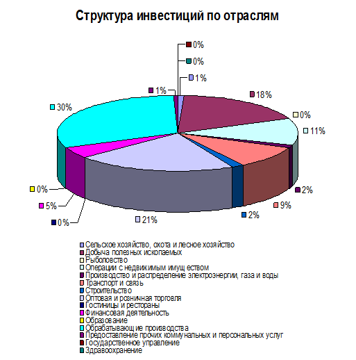 Наиболее привлекательные отрасли для иностранных инвестиций – это топливно-энергетический комплекс, обрабатывающие производства, оптовая и розничная торговля, т.е. отрасли, имеющие гарантированный спрос на внутреннем и внешнем рынке. Отрасли, ориентированные на внутренний рынок, испытывают нехватку иностранных инвестиций. Такие отрасли как обязательное социальное обеспечение, образование, здравоохранение и предоставление социальных услуг, сельское хозяйство практически не получают иностранных инвестиций.