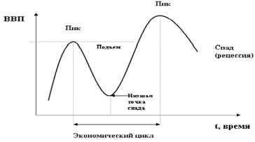 ТЕМА 15. Экономика развивается циклично, т.е. для нее характерны периоды подъема и спада деловой активности. Экономический цикл - это чередование подъема и спада экономической активности в течение ряда лет. При этом сезонные колебания не учитываются.