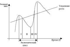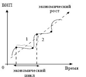 Рыночная экономика развивается циклический. Экономический цикл образуют периодические колебания общей экономической активности. Экономический рост изменяется спадом производства, процветания — кризисом и депрессией. Циклические колебания являются синхронными, происходят с постоянной последовательностью в четко очерченных временных границах.