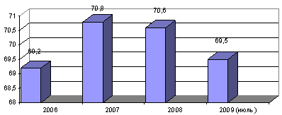 Рис.2.1. Динамика численности занятого населения в РФ в 2006-2009 (июль) гг., млн. чел.