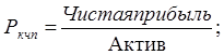 При этом актив – величина капитала – усредняется за период; коэффициент рентабельности капитала по чистой прибыли: