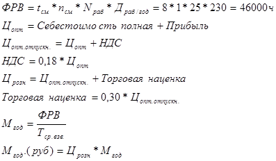 | 2 | Цена оптовая единицы продукции, руб | Цопт.. | 1010,44 |