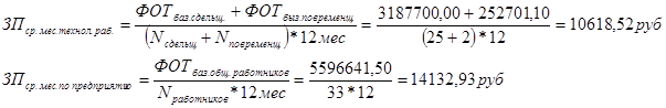4. Рассчитан ФОТ работников предприятия по категориям, при этом средняя заработная плата рабочего в месяц составила 10 618,52 руб., а работника 14 132,93руб.;