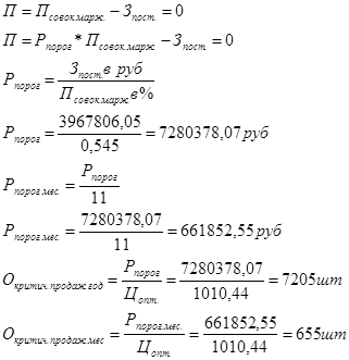 | 10 | Критический объем продаж, шт | ||