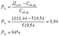 | 13 | Рентабельность продукции, % | Р% | 94 |