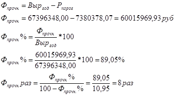 | 7 | Расходы на реализацию продукции и рекламу (10% от ФОТбаз.рук.) | 122 100,00 | 7 | Прочие расходы 10% от Σ всех предыдущих статей | 2 787 591,58 |