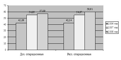 Рисунок 6 - Динамика показателей уровня рентабельности ОАО "ТАИФ-НК" за 2006-2008 гг., %