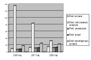 В 2007 году наблюдался рост коэффициента рентабельности активов на 4% и спад коэффициента рентабельности собственного капитала до 84%, в 2008 году коэффициент рентабельности активов увеличивается на 2 %, а коэффициент собственного капитала также сохраняет динамику к спаду.
