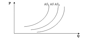 3) зміни в продуктивності праці. Під впливом нецінових факторів крива сукупної пропозиції (рис. 1.2) переміщується: ліворуч вгору, якщо сукупна пропозиція спадає внаслідок збільшення витрат виробництва (АS → АS1); праворуч вниз, якщо сукупна пропозиція зростає (АS → АS1);