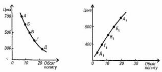 Відносна самостійність попиту та пропозиції дає можливість побудувати окремі графіки їхнього руху.Графік попиту ілюструє відому емпіричну залежність: якщо ціна товару на ринку має тенденцію до зниження, то попит на цей товар зростатиме, і навпаки. Вона виконується за умови абстрагування від дії інших факторів та вільного, не обмеженого адміністративними рамками, ціноформування.Розглянемо приклад зміни відповідних значень ринкової ціни і попиту, скажімо, на продукт N (рис. 1, табл. 1).