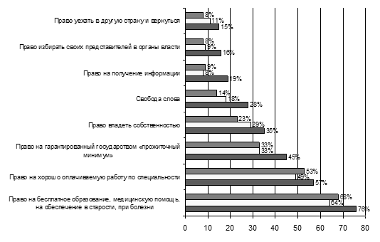 Кроме конституционных и гражданских прав, россиян волнуют социально-экономические услуги, представленные в таблице 1.