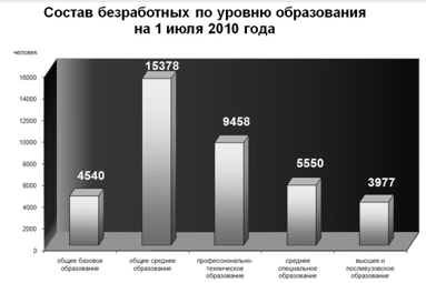 Рисунок 1. Состав безработных по уровню образования на 1 июля 2010 года