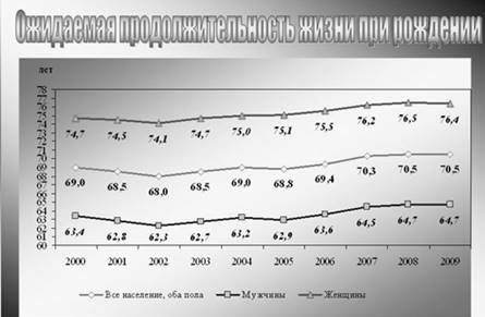 В 2009 году тенденция увеличения рождаемости сохраняется. Так, число родившихся в январе-декабре 2009 года по данным текущей статистики составило 109813 человека, что на 1903 человека или 1,8 процента больше, чем в аналогичном периоде 2008 года.