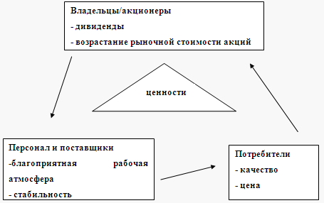 Рис 1.1. Система ценностей акционеров, персонала, поставщиков и потребителей продукции предприятия.
