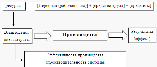 Процесс формирования результатов и эффективности производства (производительности системы) показан на рис. 1.2.
