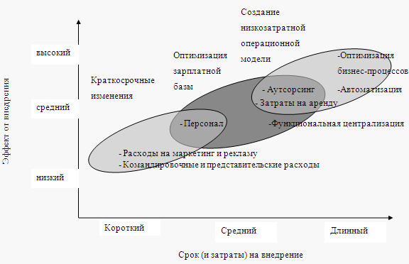 | Расходы на маркетинг и рекламу (потенциал снижения затрат- 5-10%) | Пересмотр политик и процедур, связанных данной группой расходов. Повышение эффективности использования и контроля отдачи от маркетинговых рекламных мероприятий. |