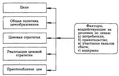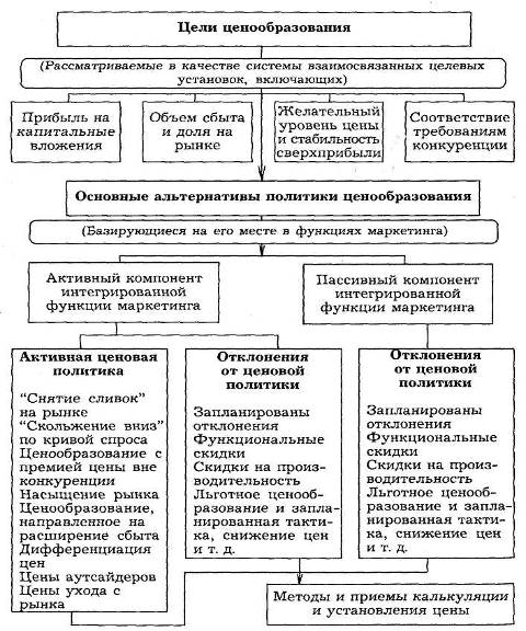 Цена влияет на характеристики товара, методы его продвижения и каналы распространения, равно как и все эти факторы влияют на цену. Предприятие не просто устанавливает единую цену, а скорее создает целую систему ценообразования, которая охватывает цены на различные товары их ассортимент. Структура ценообразования изменяется одновременно с тем, как товар проходит свой жизненный цикл. Предприятие корректирует цены на товар, исходя из издержек и спроса, учитывая различные ситуации и потребности покупателей.