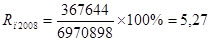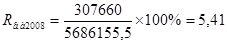 Рентабельность продаж ООО «НПРС-1» показывает, что с 1 рубля продаж предприятие на конец 2008 г. имеет 0,0572 руб. прибыли. Данный показатель напрямую связан с динамикой цены реализации продукции, уровнем затрат на производство. Рентабельность реализованных услуг: