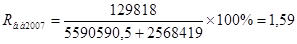 Рентабельность всего капитала предприятия за период выросла и составила 0,0396 руб., прирост 149%. Рост рентабельности является благоприятной тенденцией развития, но поскольку рентабельность всего капитала меньше рентабельности продаж на 1,31%, можно сделать вывод о неудовлетворительном использовании капитала предприятия ООО «НПРС-1».