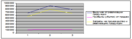 Сравнительный анализ объемов и темпов роста выручки от реализации продукции, прибыли и затрат на ее производство и реализацию показал, что выручка ОАО «Мельник» к 2008 г. снизилась на 13,9%, однако одновременно снизились и затраты на производство и реализацию продукции на 16,31%, в то время как прибыль от реализации продукции имела стабильный рост. Стабильный рост прибыли и одновременное снижение затрат на производство и реализацию продукции характеризует интенсивное развитие предприятия, т.е. рост финансовых результатов не за счет повышения цен на продукцию, а за счет расширения производства.