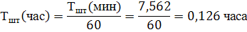 Где, Тшт руч. – норма штучного времени на выполнение операции 7,562 (берется из таблицы 1);