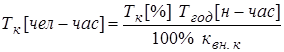 Т [чел.-час]= Т [ст-час]× Кодн .