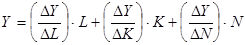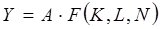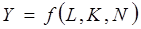 Y означает национальный доход или ВНП данной страны, а L, K, N – наличные трудовые ресурсы, капитал и земельные ресурсы в масштабах национальной экономики.
