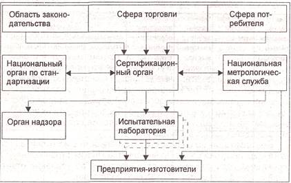 Важным элементом в системе сертификации является национальная организация метрологической службы, которая обеспечивает единство измерений и единообразие средств их проведения, методов определения точности, а также создание эталонов и образцовых средств измерений.
