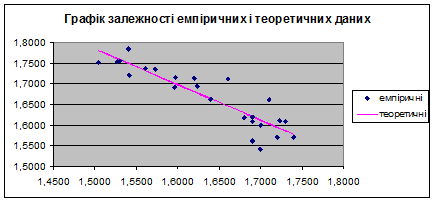 5) Визначили рівняння тренду за цими функціями та встановили, що найбільш точним з них є – експоненціальна та визначили її взаємне відхилення, яке становить – 0,44;