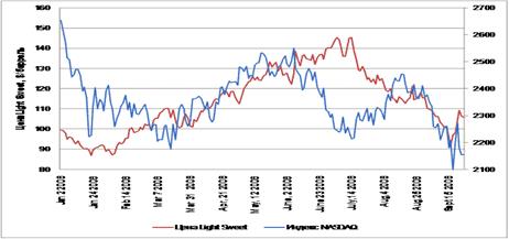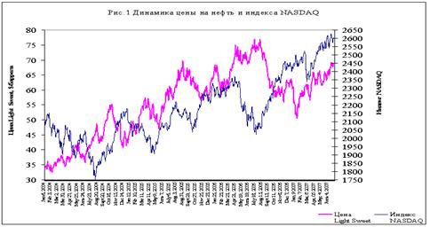 Рис.2. Динамика цены на нефть и индекса NASDAQ. [5]