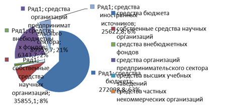 Внутренние затраты на исследования и разработки по источникам финансирования(миллионов рублей)