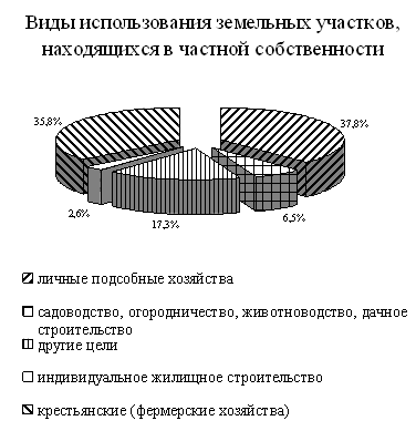 Анализ видов использования земельных участков, находящихся в частной собственности показывает, что более 17% из них ни как не используется. Это вполне может предполагать дальнейшее их использование в спекулятивных целях (диаграмма 1).